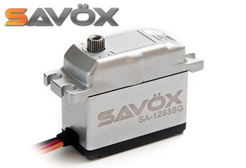 A Savox apresentou o novo servo digital SA-1283SG Heavy Metal coreless, com uma capacidade de 30 kg e apenas 6 V. O servo pesa apenas 80 gramas com o case totalmente feito de aço e engrenagens de metal. As características a tornam perfeita para uso em modelos como rock Crawler.